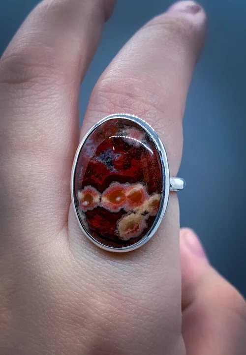Silver & Mexican Poppy Jasper, 1” x 0.8” x 0.8”
