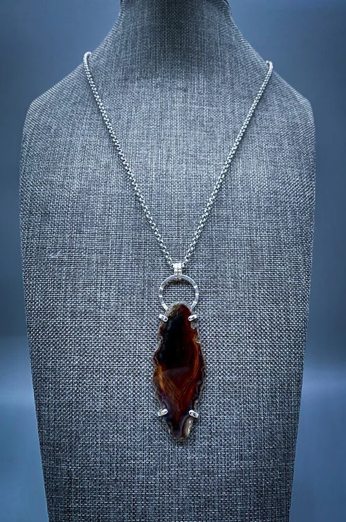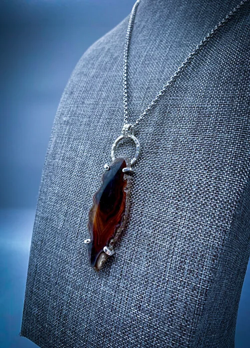 Sterling Silver & Agate, 2.5” x 0.75” x 0.25”
