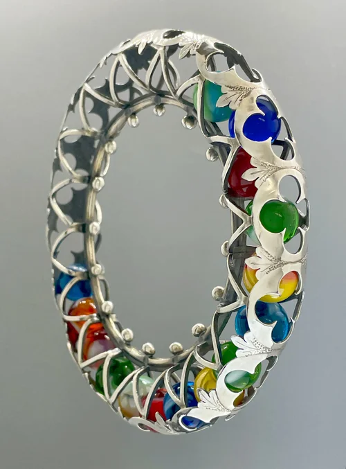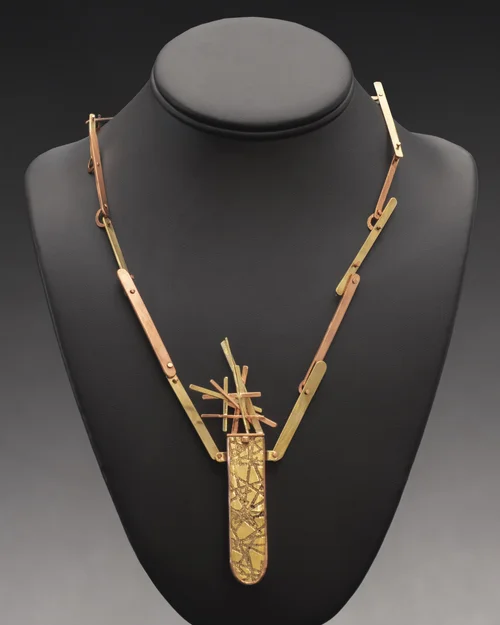 Copper, Sterling Silver, Brass & Glass Enamel, 2” x 0.75” x 0.3”