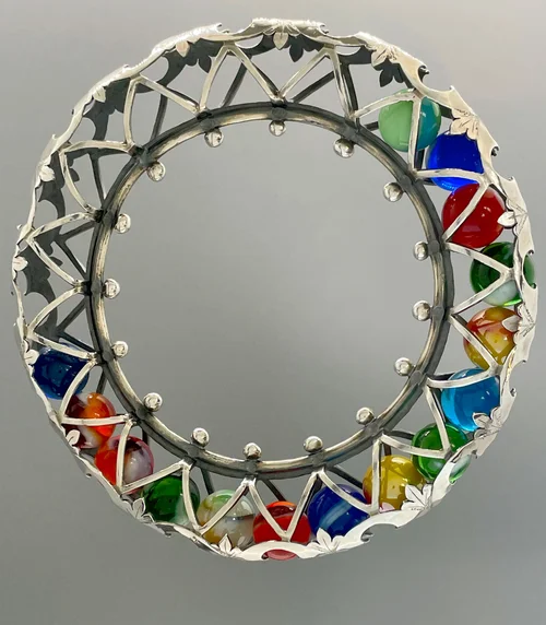 Copper, Nickel Silver, Sterling Silver & Glass Beads, 10” x 8”